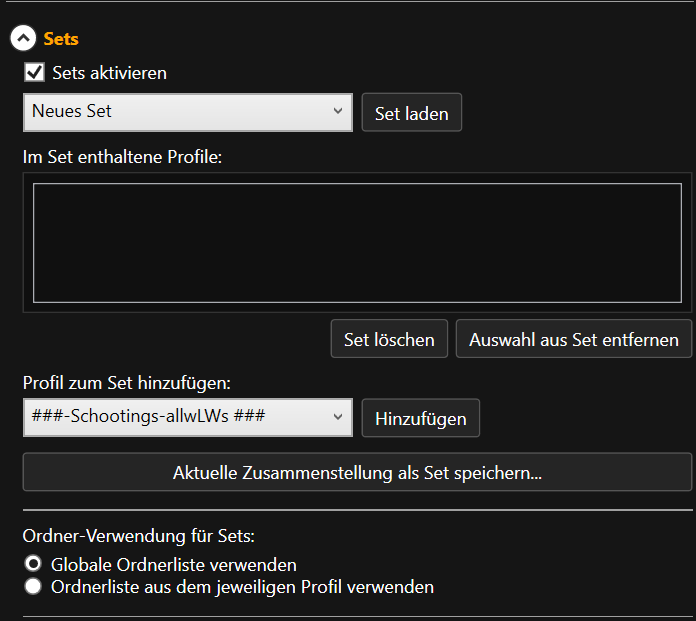 - Sets: Ein Set ist eine „Playlist“ aus mehreren Profilen.